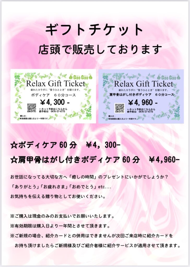 グーグーでは、この度店頭にて ギフトチケットの販売を開始しました!
